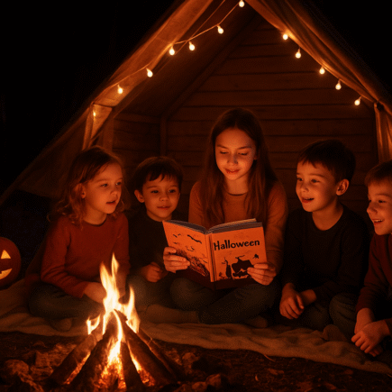 Aproveite 5 histórias encantadoras de Halloween para crianças — perfeitas para uma noite em família, cheia de imaginação, risadas e um toque de mistério.