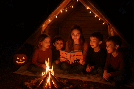 Aproveite 5 histórias encantadoras de Halloween para crianças — perfeitas para uma noite em família, cheia de imaginação, risadas e um toque de mistério.